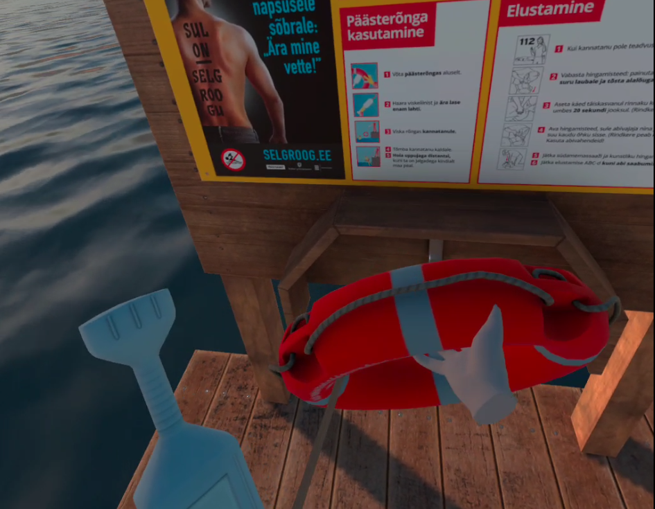 2. Võta päästerõngas tugevamasse kätte, et see võimalikult ohutult ja kiirelt uppujale visata (ümmargune oranž rõngas)