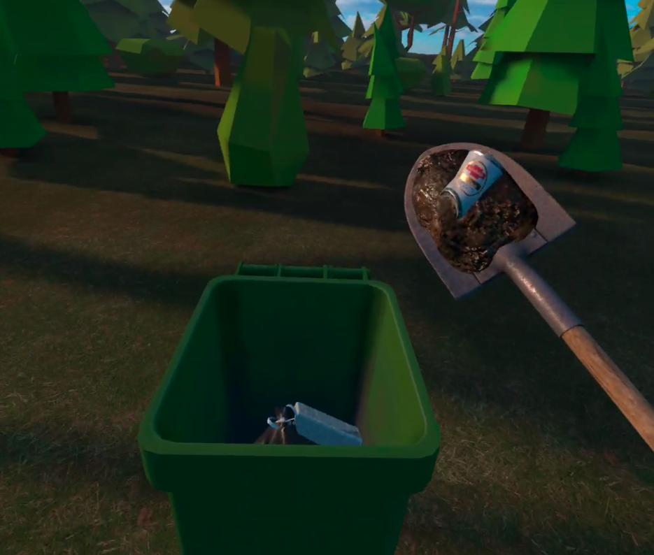 - Kühvelda prügi prügikonteinerisse (3 x labidaga viskeid). Prügi võib suunata