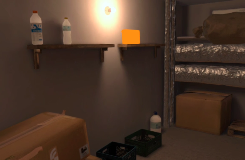 takistus – kartulikott koridori lõpus. Haara kartulikotist kinni hoides all puldi ees olevat nuppu, teleportides samal ajal ennast akna juurde ning tõstest kartulikott akna ette (tõsta käsi rohelise ala sisse ja lase nupust lahti). Kartulikotiga saad katta aknaid, kõige rohkem võivad ohtu tekitada lendav praht ja klaasikillud.