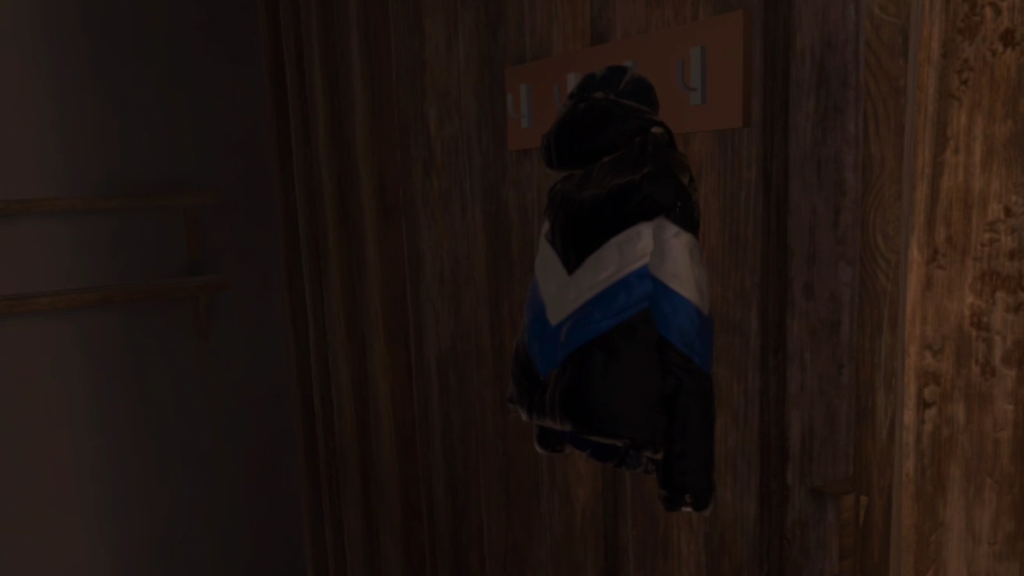 9. Varju vabas keldriboksis. Peale jope leidmist, ilmub samas boksis oleva pingi peale sinakas helendav laik, millele liikudes saab mäng läbi.