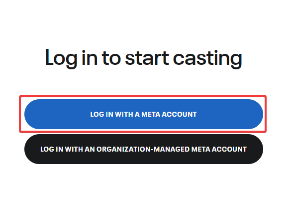 Avage arvutis veebiaadress https://www.oculus.com/casting ning vajutage “LOG IN WITH A META ACCOUNT.